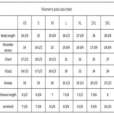 Polos are a blend of polyester and spandex with moisture wicking material and are true to fit sizing. Available in Men's and Women's sizes S to 7XL.